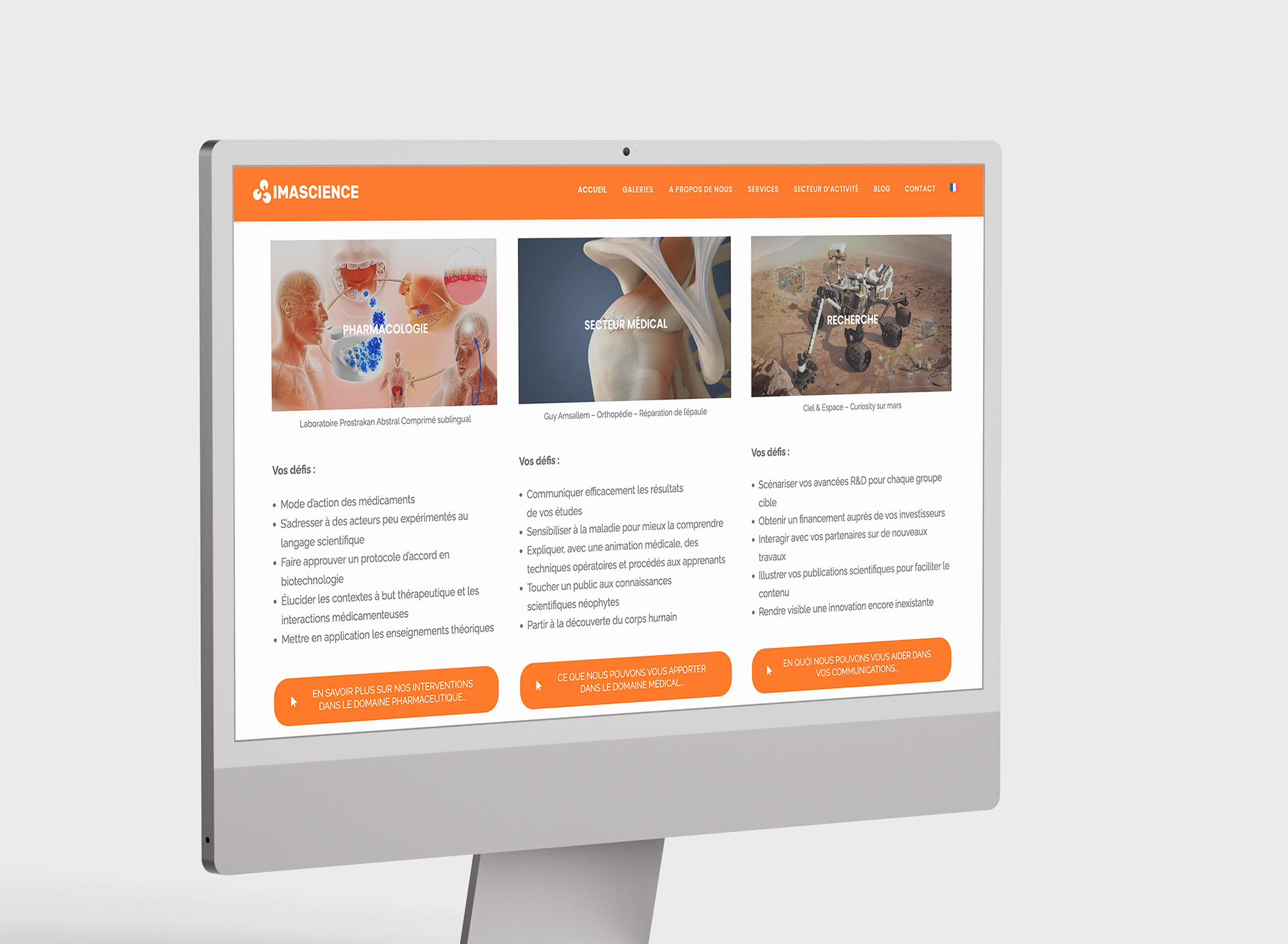 Après la refonte du site, l’objectif était de structurer une visibilité pérenne autour des expertises clés d’Imascience : animation 3D, illustration scientifique, vulgarisation médicale, réalité virtuelle…